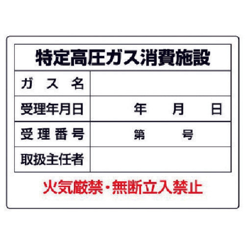 Contents: Specified high pressure gas consumption facility Gas name, date of receipt, acceptance number, handling supervisor