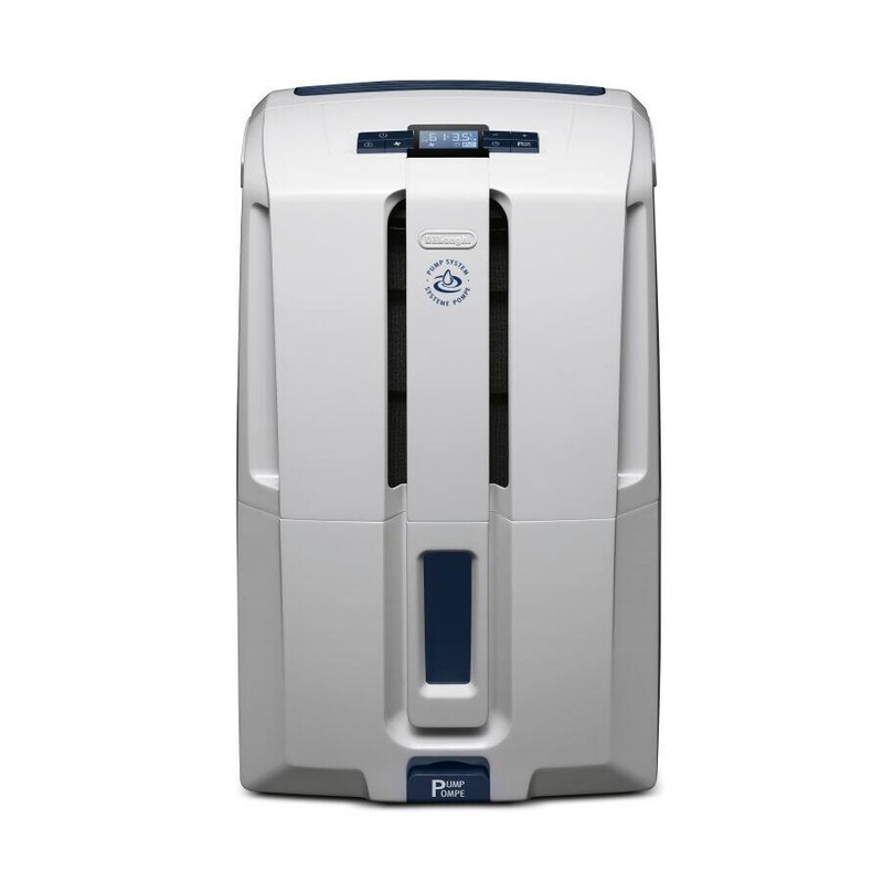 Ideal for rooms up to 500 sq. ft. in total area, the DeLonghi DDX45PE 45-Pint Dehumidifier with pump is the simple way to improve the air quality in your home without a complicated setup. You can simply select your ideal humidity level and breathe in the fresh air. It is the ultimate in home comfort convenience with its patented True Pints Per Day pump system that continuously discharges moisture so you dont have to constantly drain a water bucket. Water removal is simple: With its hassle-free pump system, simply drain the water out a window or a drain sink up to 16 feet overhead with the included hose. You can also choose to drain the water passively through the 3-ft. gravity feed hose or simply empty the water into the removable water tank, which is frontally located for easy access. The transparent water level window lets you see how much water has been collected if using the tank option. The DeLonghi DDX45PE 45-Pint Dehumidifier also features LCD electronic controls that allow you to select the ideal humidity level by adjusting the humidistat, a 24-hour on/off timer, antifrost setting and 2-speed fan. The DDX45PE is the perfect dehumidifier for a cleaner, healthier home.