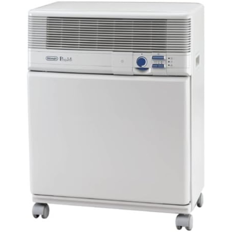 One of the drawbacks of air conditioners is the sound of the compressor - the part involved in the actual cooling system. The DeLonghi PAC400 resolves this by splitting this portable air conditioning unit into 2 pieces. One acts as a quiet fan while the other has the compressor. The two pieces are connected by a hose. The DeLonghi PAC400 portable split air conditioner is the perfect cooling solution for most rooms. With 13,000 BTU of cooling power, it can freshen about 450 square feet. In a split system, the quiet fan unit resides in the room to be cooled, while the external piece (where the cool air is generated by the compressor) is placed outside of the room or outdoors. The result is quieter performance inside the room. The drawback is you need another space to place the compressor portion. It can go outside room door into hallway. Or needs to be place on an indoor patio or terrace. Automatic safety device protects the compressor when unit is switched on immediately after being switched off No-drip technology uses condensation and collected moisture to help cool the air; excess vapor then discharged through the exhaust hose FreshZone air filtration Energy-efficient adjustable thermostat Easy-to-use control panel Window/door bracket for easy installation and exhausting of hot air 24-hour programmable timer with clock function and convenient bypass function Energy-saving; because a portable air conditioner can be operated independently of central systems, it is easier to target cooling to specific areas Pipe Length - 13 Compressor Type - rotary 2 fan speeds Unit Size Indoors - 16 1/7D x 22 W x 28 3/4H; Unit Size Outdoors - 10 1/4D x 18 8/9W x 22 4/9H Weight - 92.6 pounds