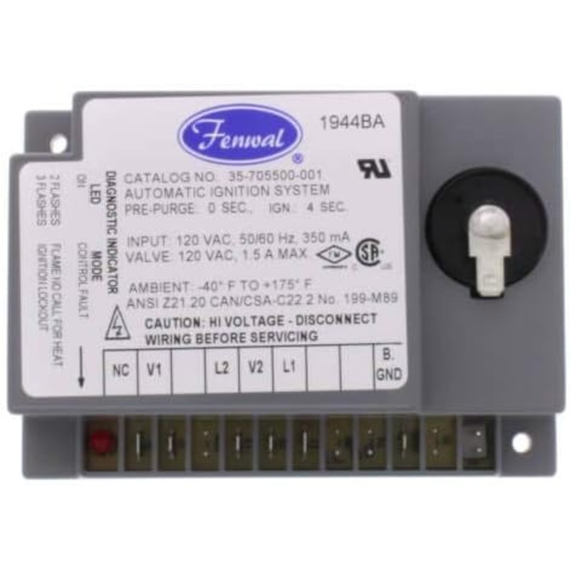 The Fenwal 35-705500-001 Direct Spark Ignition Control offers advanced technology for reliable ignition of natural gas, propane, and manufactured gases. It incorporates a microprocessor for precise control and features a zero-second prepurge and a four-second trial-for-ignition.