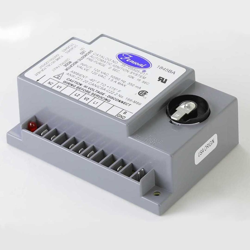 The Fenwal 35-705505-017 direct spark ignition control module operates at 120 volts and is designed for efficient and reliable performance. It features a 15-second trial-for-ignition with a three-try mechanism, making it a dependable choice for industrial heating applications.
