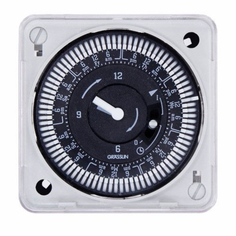 The MIL72 series time switches are designed for flush mounting inside a control panel. They are light-duty commercial timers that handle both AC and DC applications, including lighting control, pumps, and fan controls.
