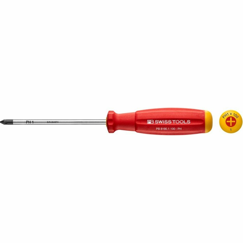 General InformationBrandPB Swiss ToolsUPC7610733274161PackagingRetailCountry of OriginSwitzerlandCalifornia ResidentsProposition 65 WarningPart NumberPB 8190.1-100Product TypeStandard ScrewdriverPhysical CharacteristicsMaterial Alloy SteelWeight0.05 kg0.11 lbDetailsTip TypePhillipsSizePH1Blade Length100 mmFeaturesfor Phillips screws